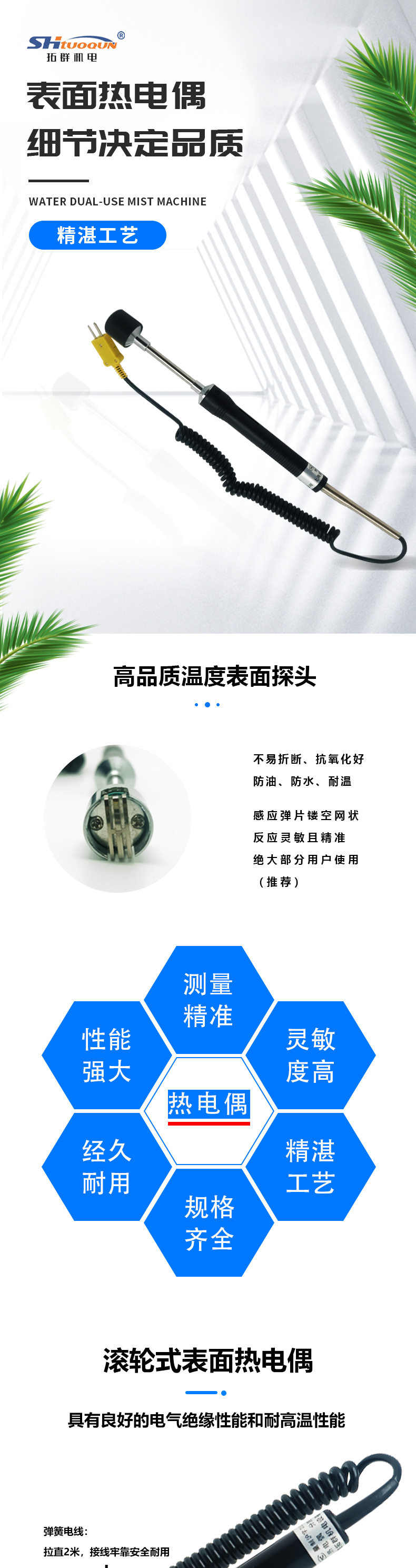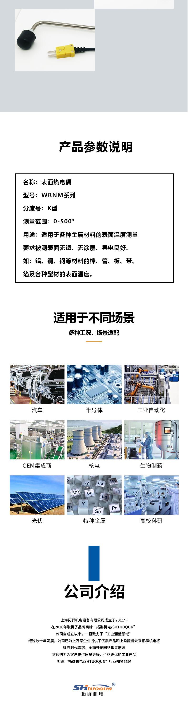 拓群机电直柄式表面热电偶WRNM-01直柄磨具接触式模具表面