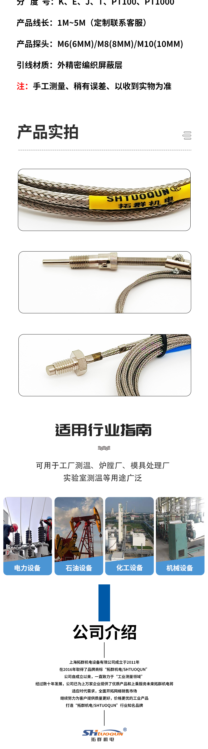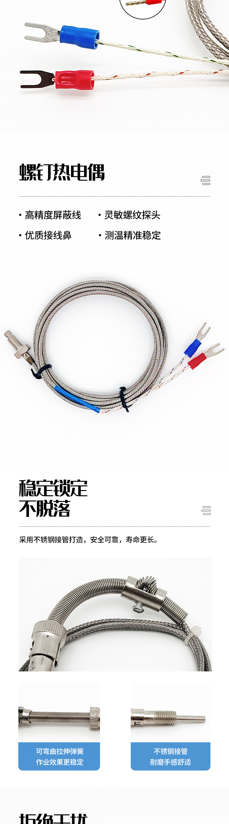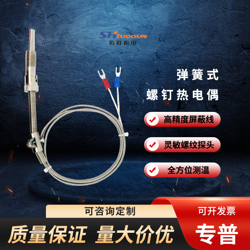 • 拓群K/E/PT100型压簧式热电偶 温度传感器 屏蔽测温线 温控仪探头