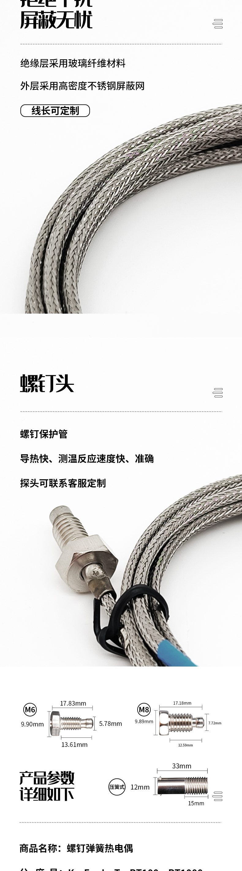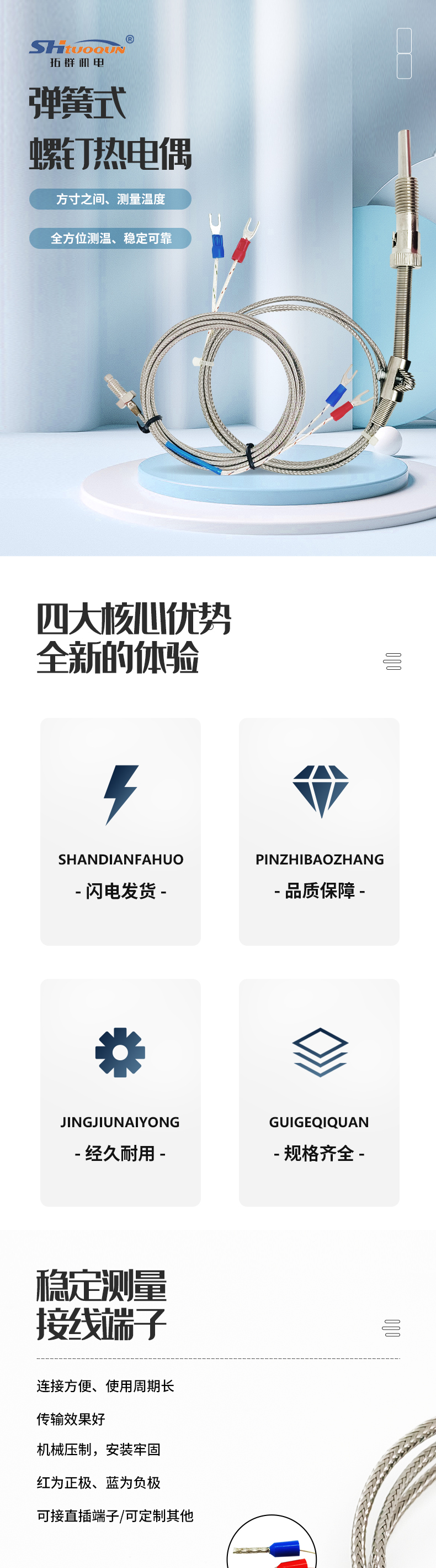 拓群K/E/PT100型压簧式热电偶 温度传感器 屏蔽测温线 温控仪探头