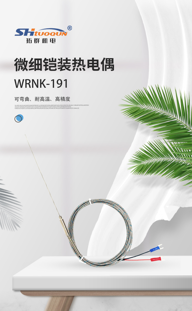 拓群K型超细铠装热电偶0.5mm温度传感器高温探针WRNK-191可弯曲