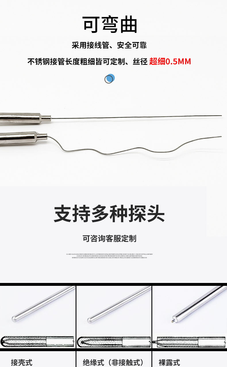 • 拓群K型超细铠装热电偶0.5mm温度传感器高温探针WRNK-191可弯曲