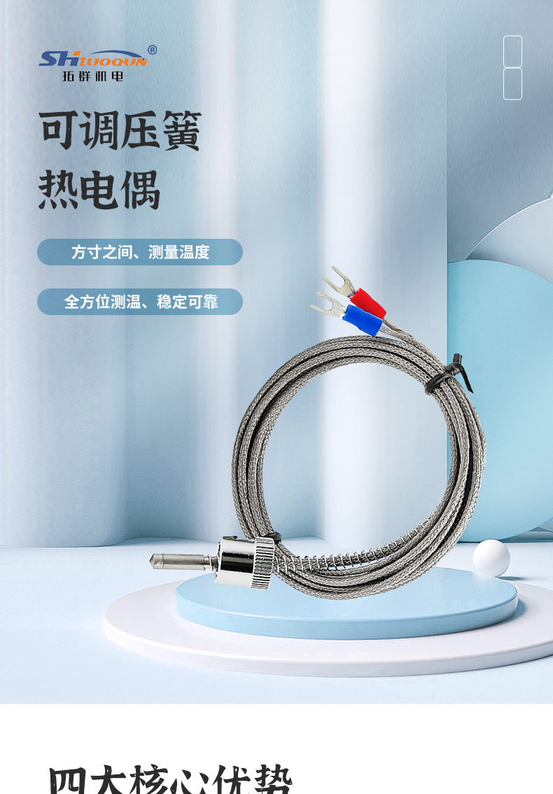 卡簧热电偶K型卡扣压扣式可调压簧电热偶J型注塑机温度探头传感器