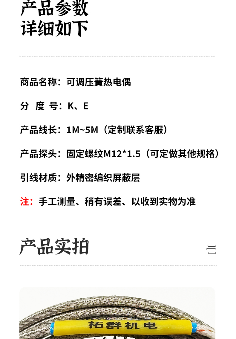 • 卡簧热电偶K型卡扣压扣式可调压簧电热偶J型注塑机温度探头传感器