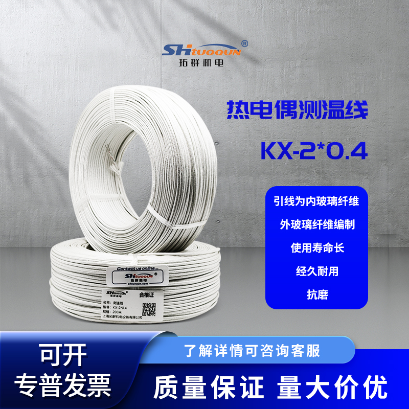 • 拓群K型热电偶线KX补偿导线屏蔽测温热电偶补偿线延长线2*0.4