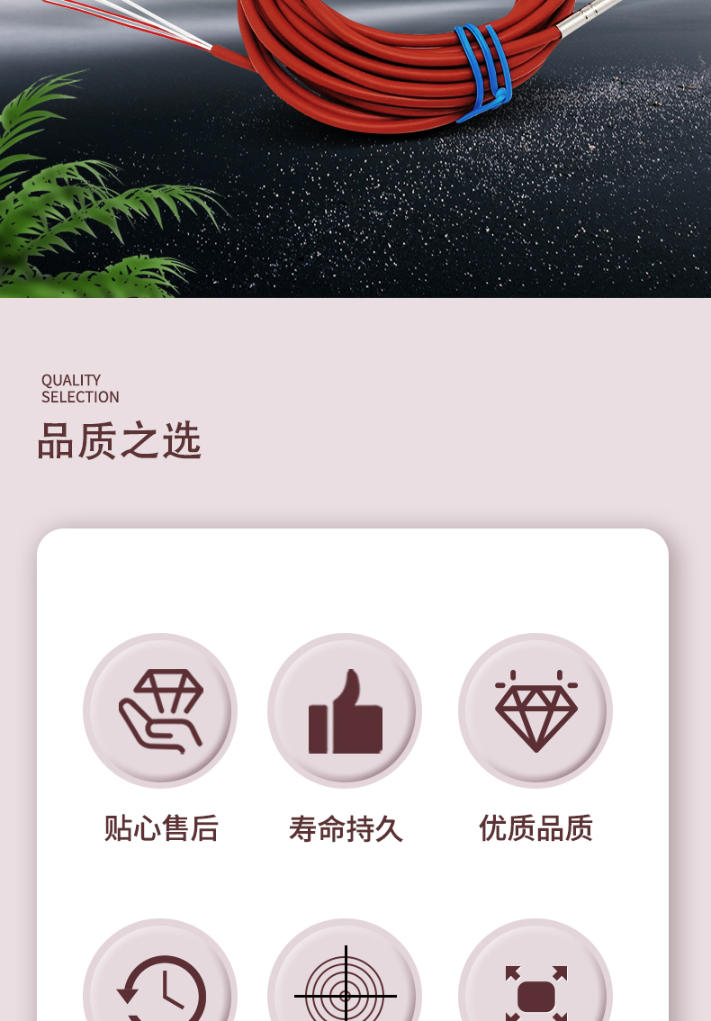 • 拓群PT100/1000铂热电阻 JUMO芯片高精度测温探 硅胶线防水探头