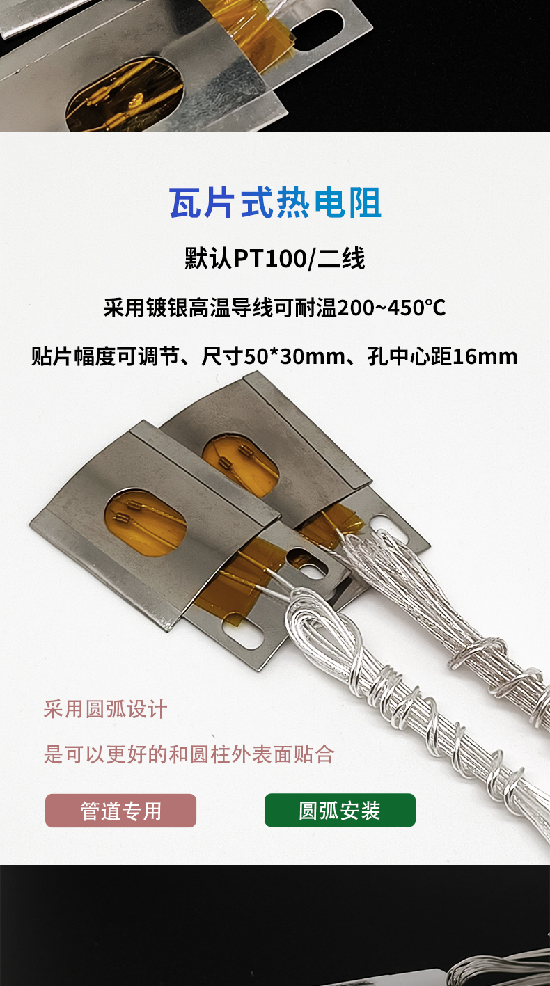 瓦片式A级B级PT100铂电阻 管道贴片式热电阻芯片 管道温度传感器