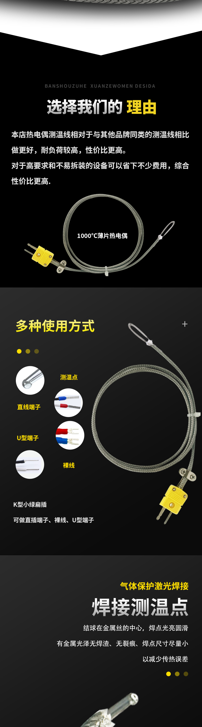 XS-K-20-IB热电偶测温线耐高温屏蔽陶瓷纤维感温线实验炉温温控线