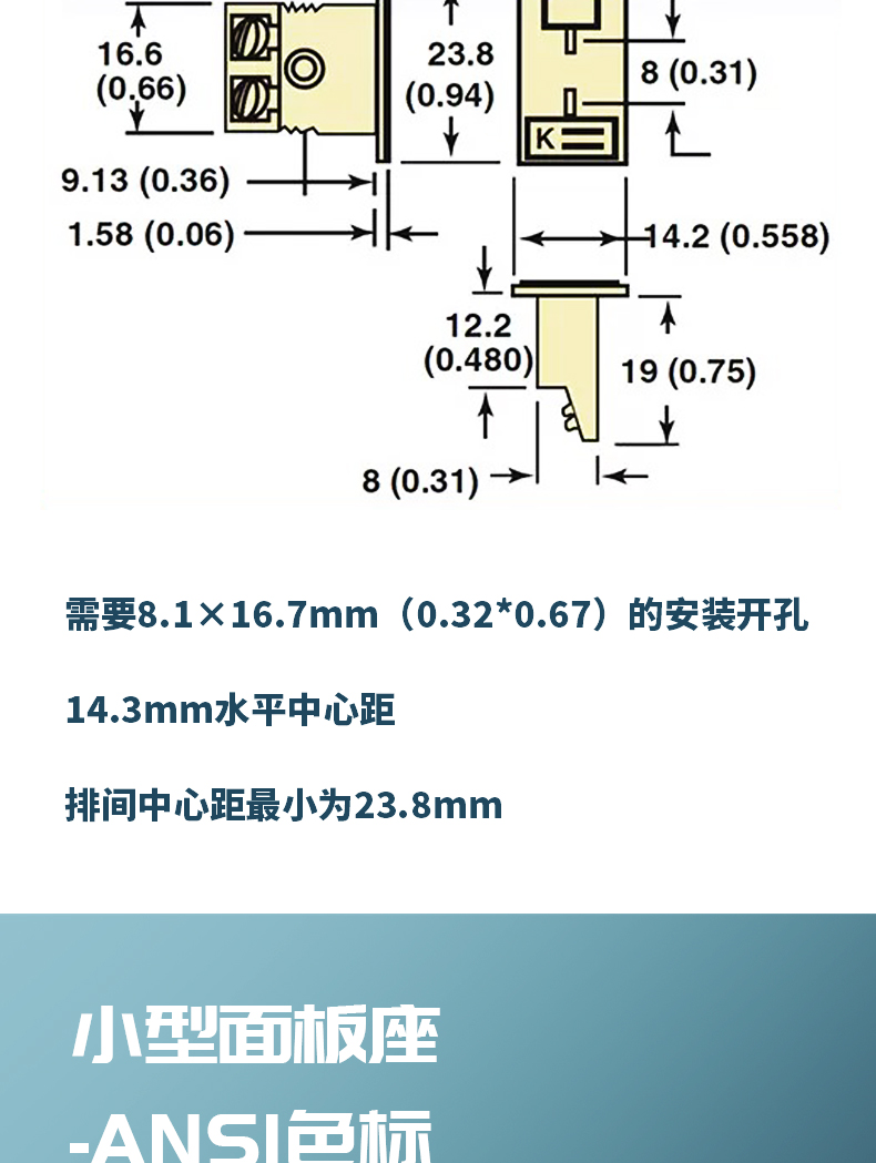 拓群MPJ-U-F热电偶插座测温补偿线端子 热电阻连接器面板母座