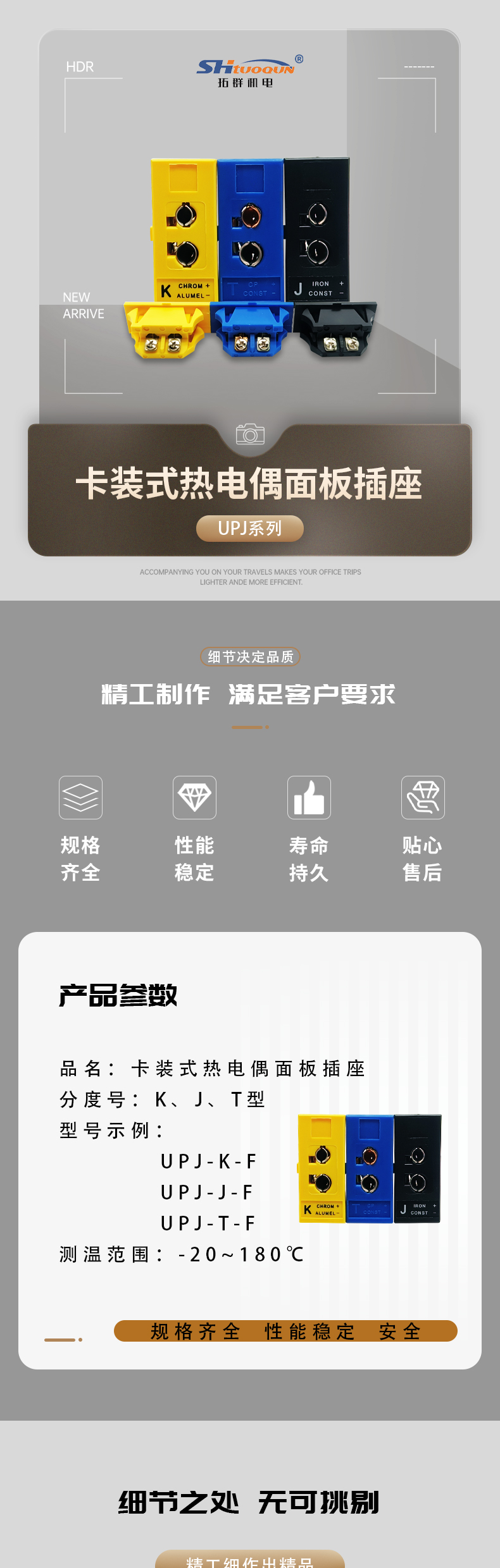 • T型热电偶嵌入式插头连接器卡装式热电偶面板插座母接头UPJ-T-F