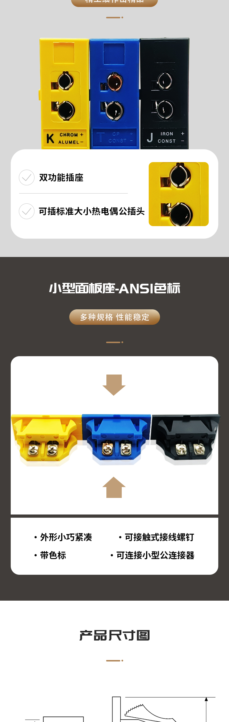 T型热电偶嵌入式插头连接器卡装式热电偶面板插座母接头UPJ-T-F