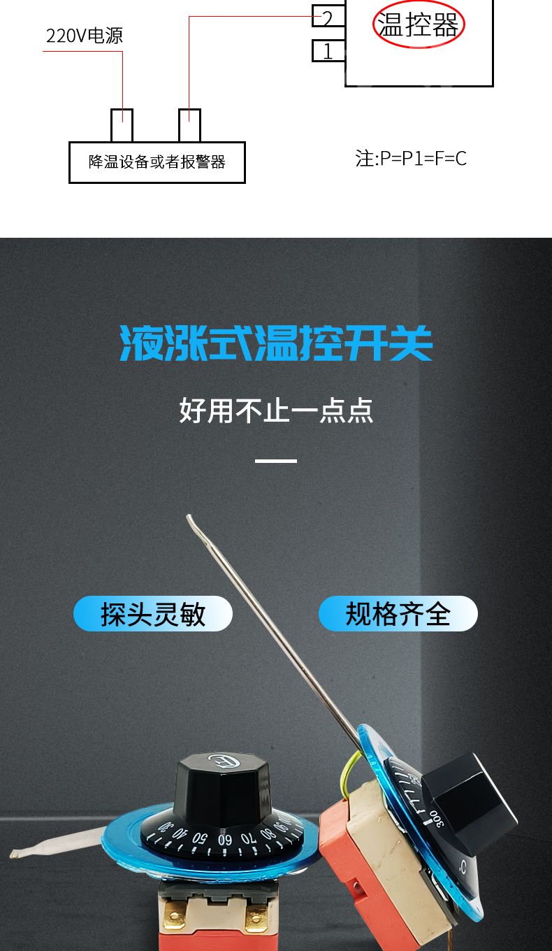 • 30-110度50-300机械开关开水器电烤箱旋钮温控器油炸炉电炸锅温控