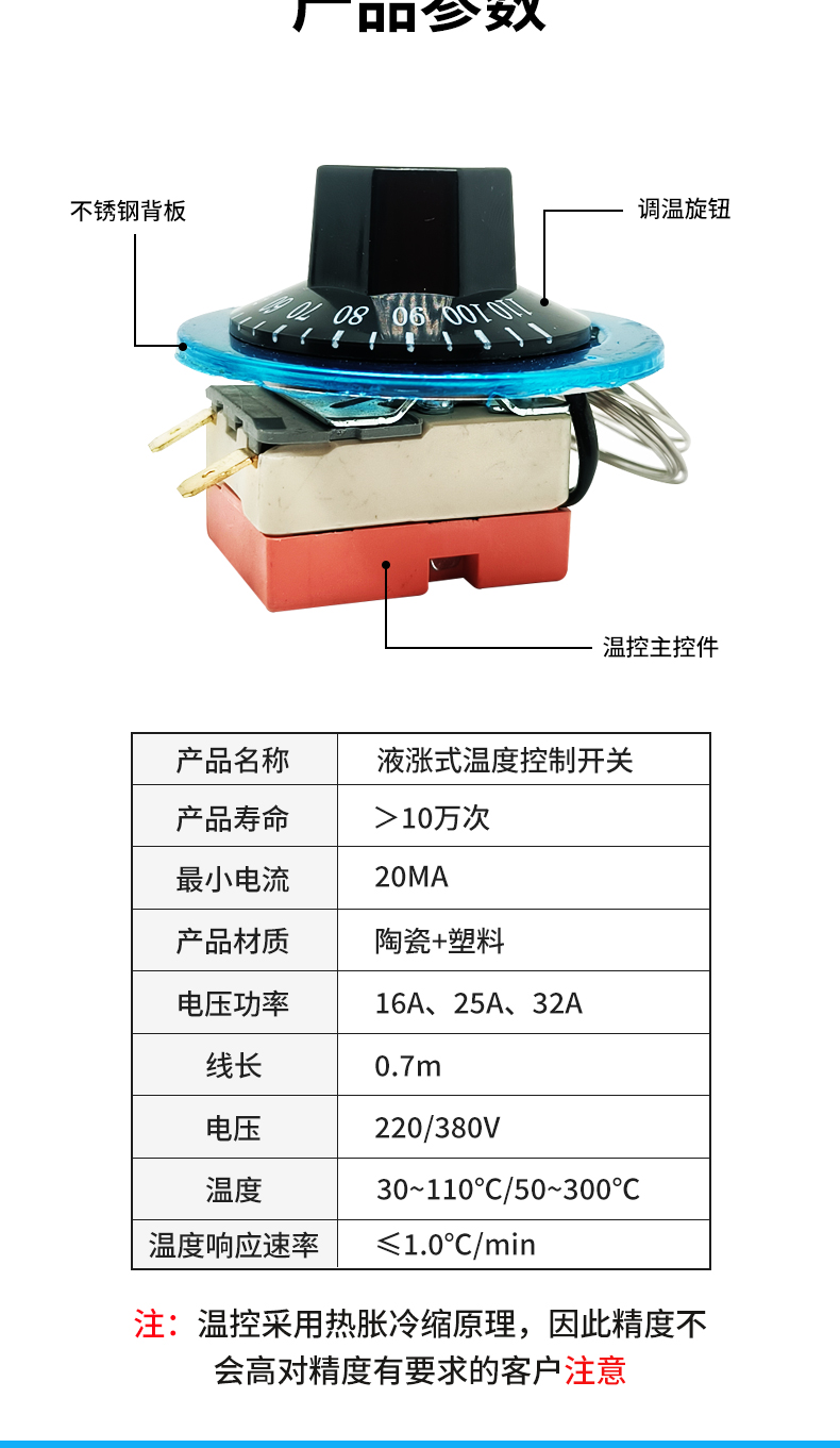 30-110度50-300机械开关开水器电烤箱旋钮温控器油炸炉电炸锅温控