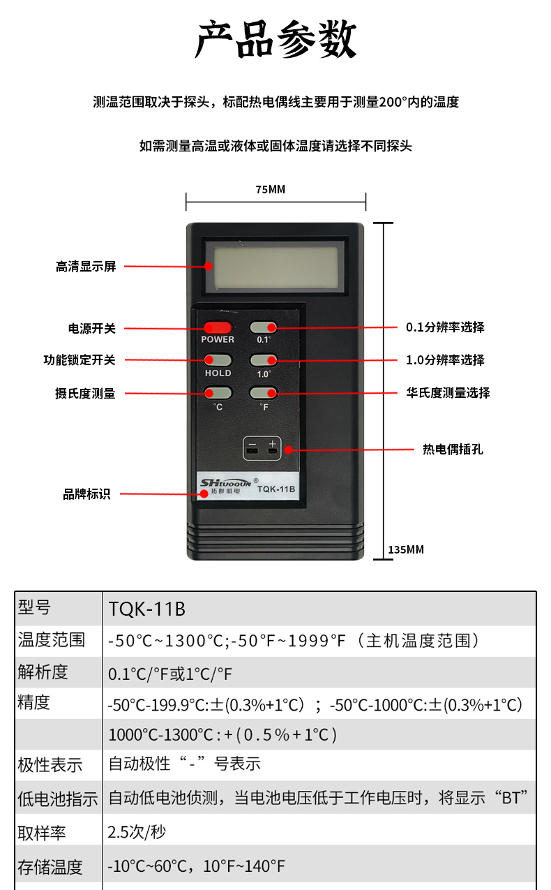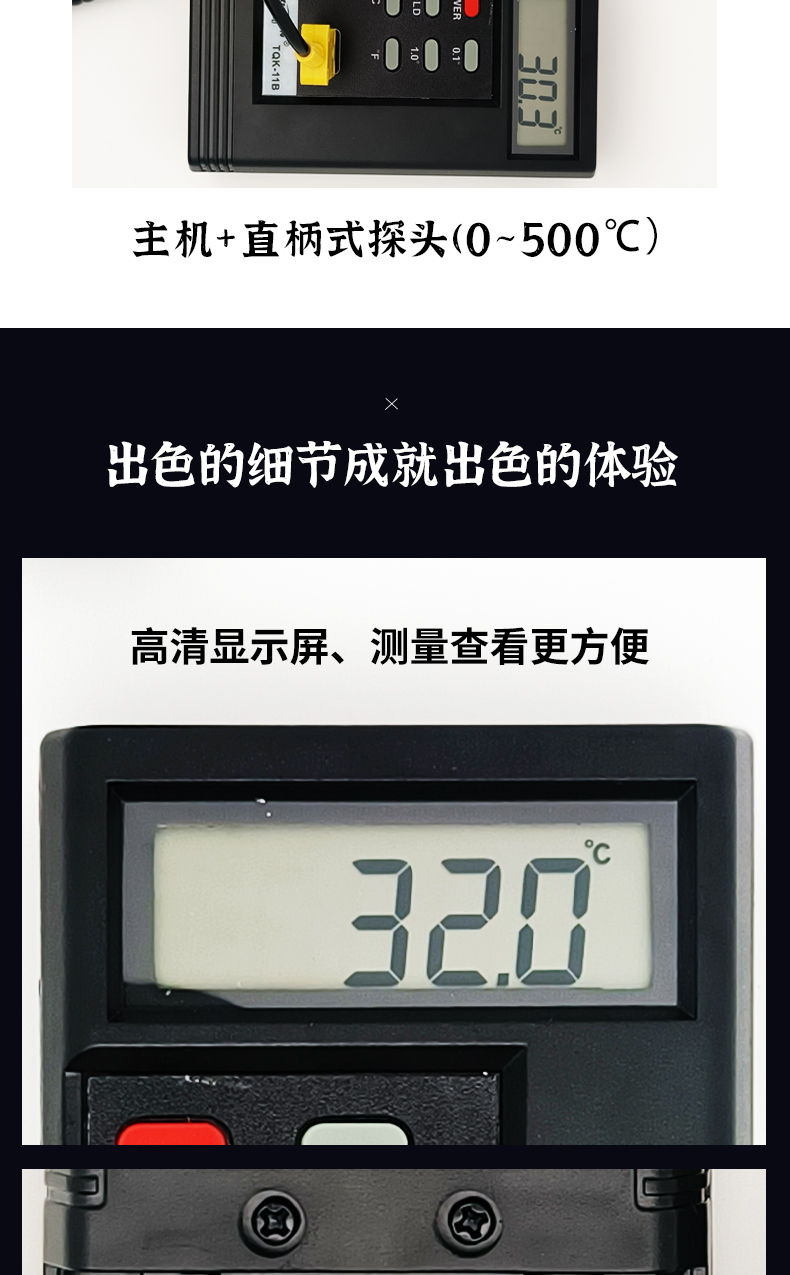 • 高精度测温仪TQK-11B接触式模具表面数字温度表计高温热电偶探头