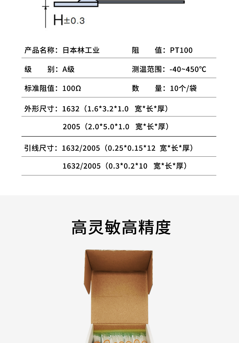 日本PT100/PT1000热电阻 林电工热电偶A级薄膜电阻芯片温度传感器