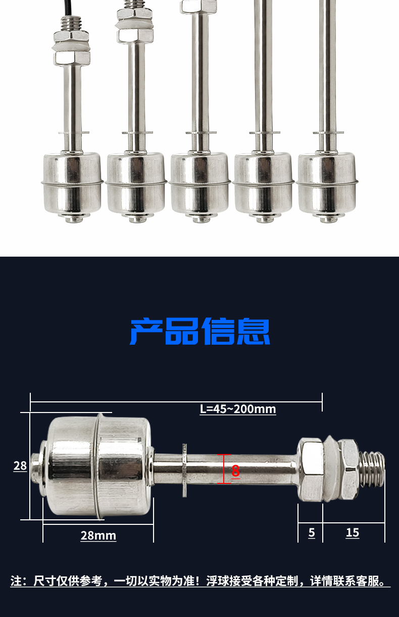 液位控制器水位控制器304高温不锈钢浮球开关 液位开关 水位开关