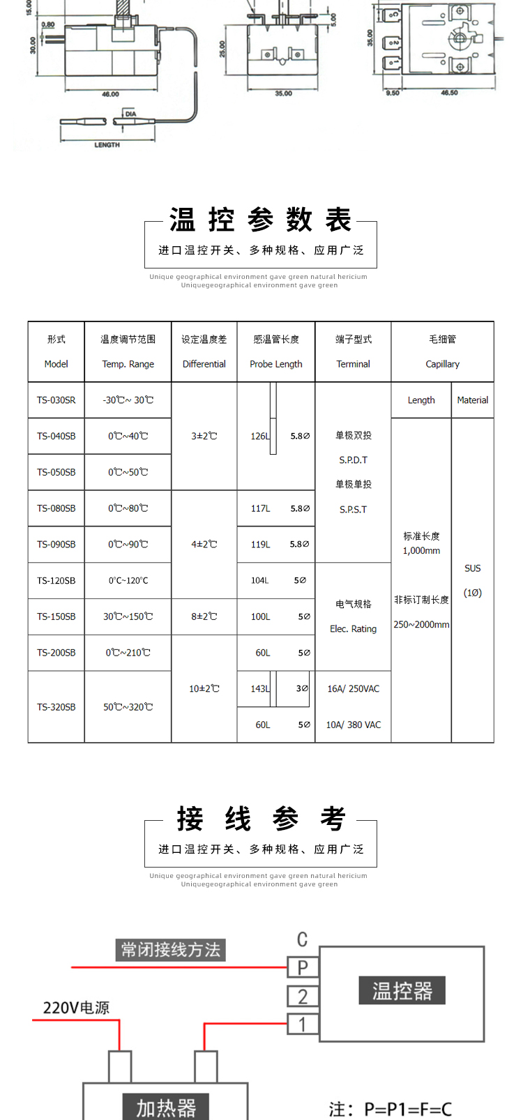 韩国彩虹Rainbow温控器旋钮机械可调温电热水器炸炉烤箱温控开关