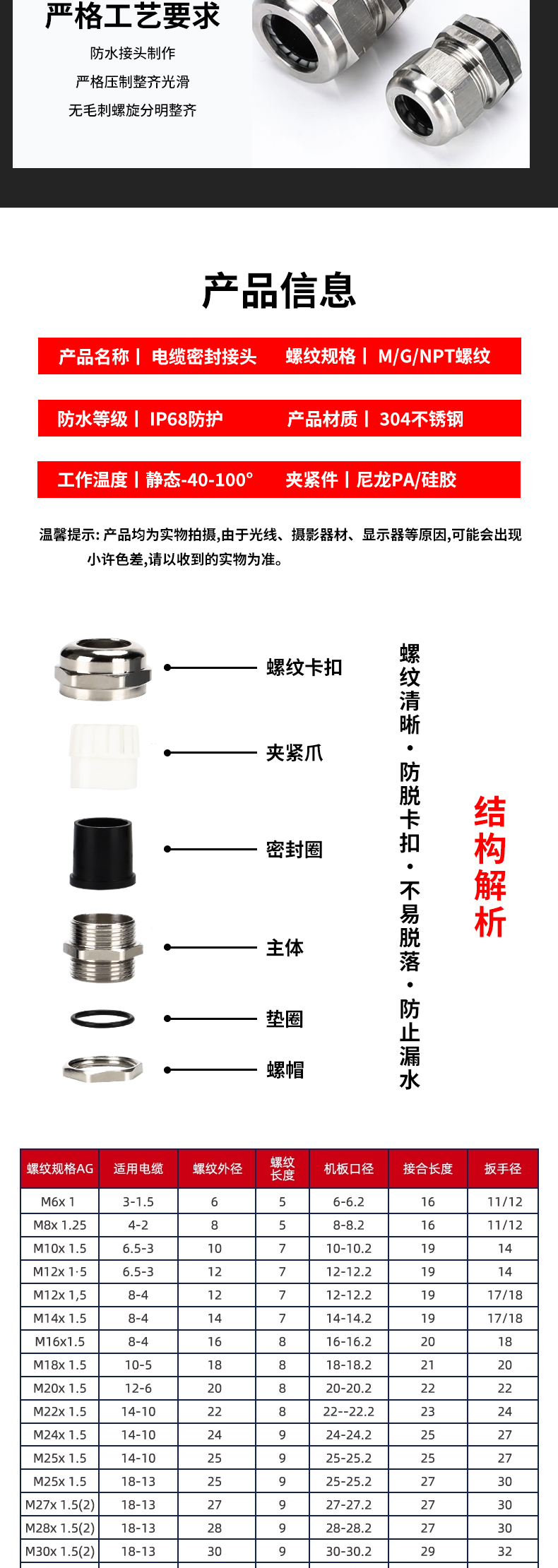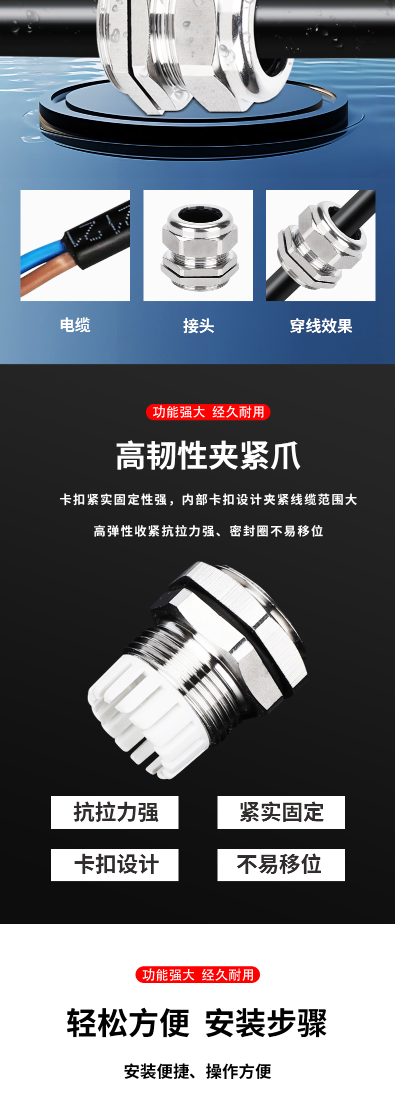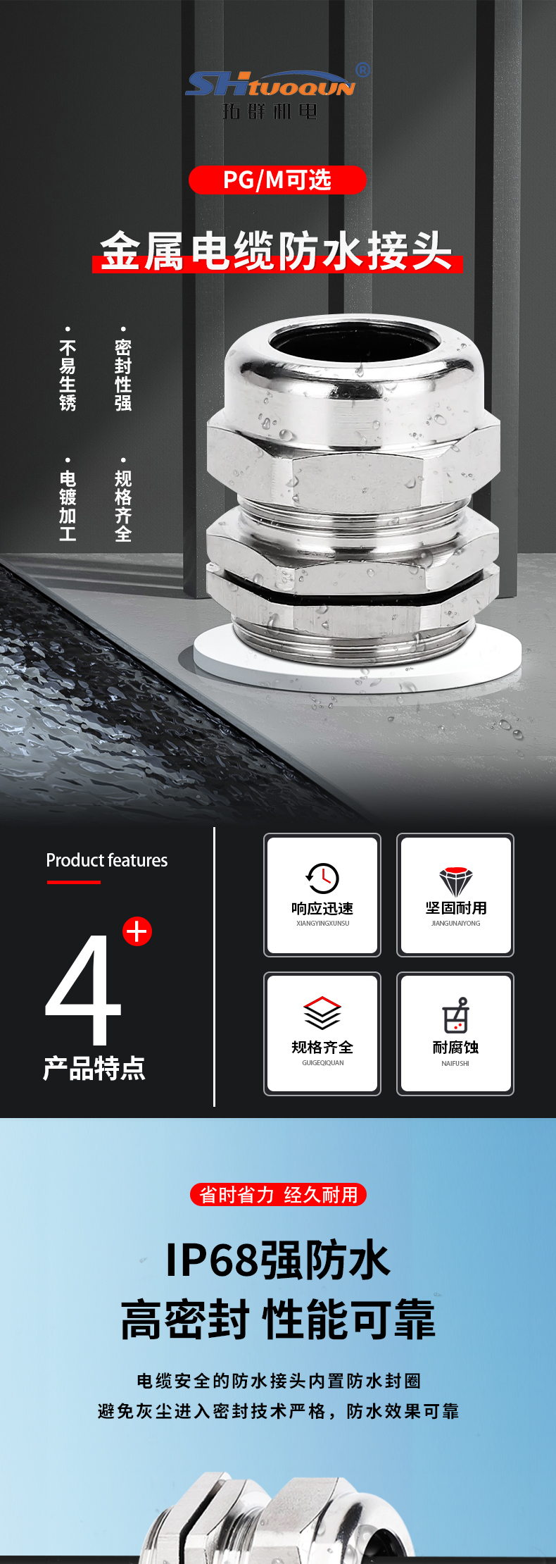 • PG/M系列填料函格兰头 电缆防水接头金属密封固定头锁紧葛兰头