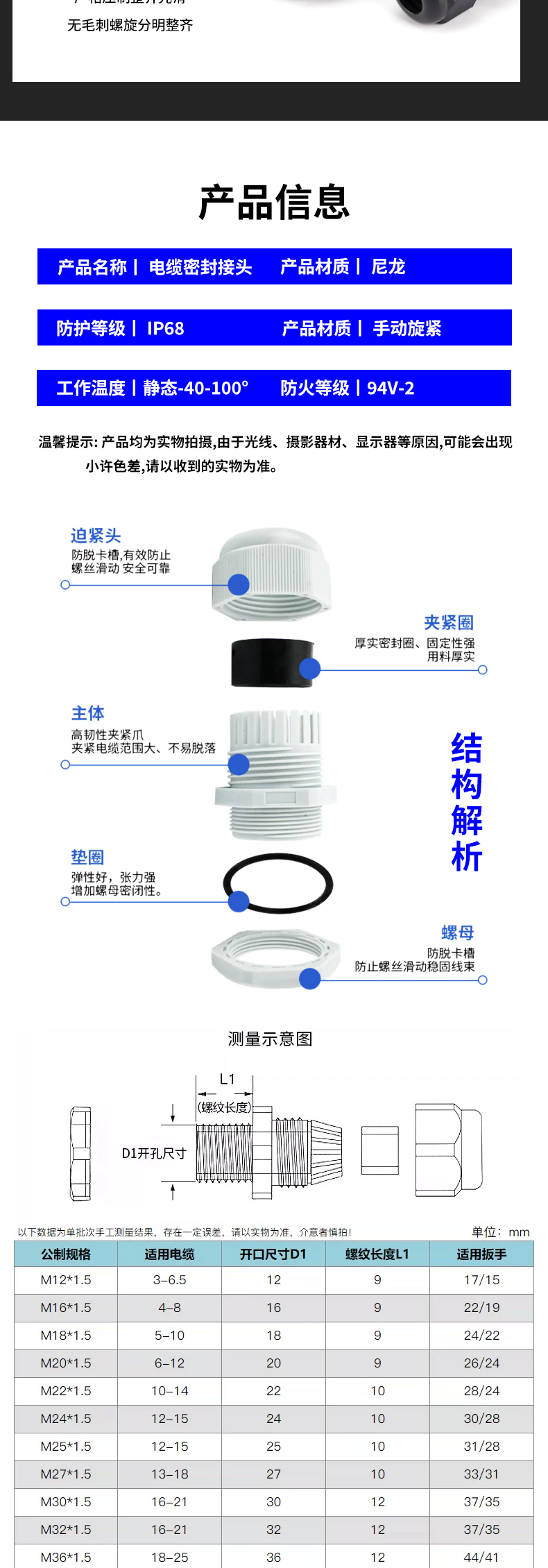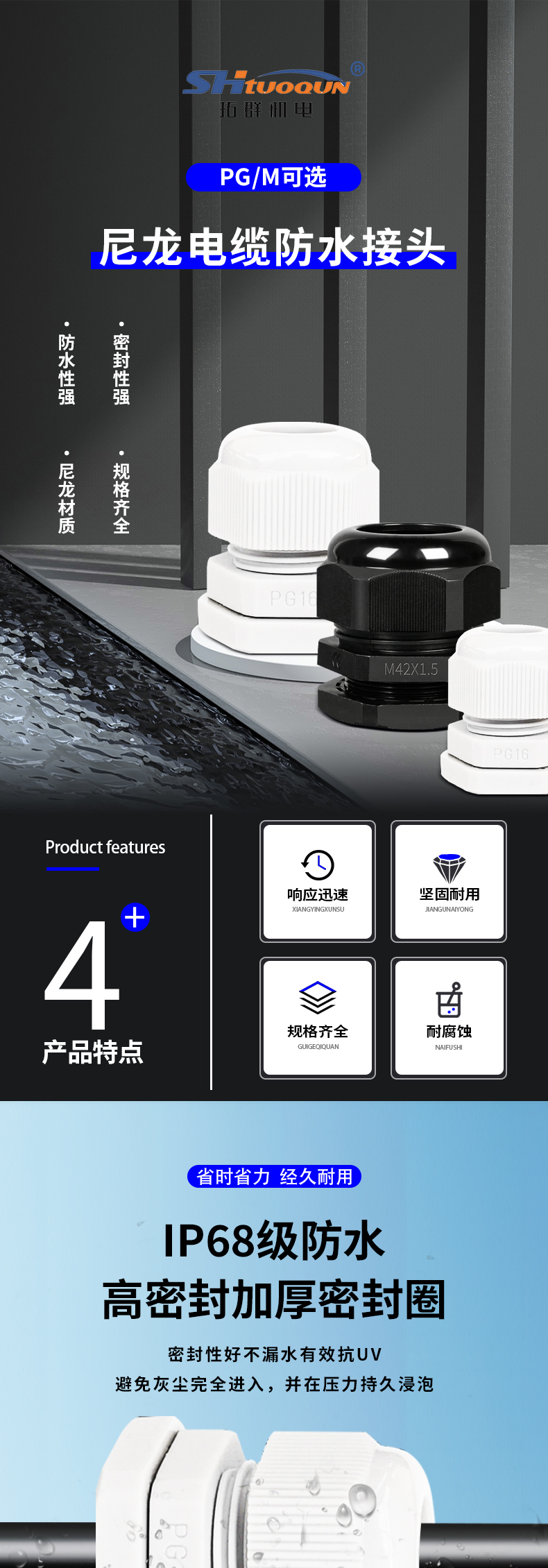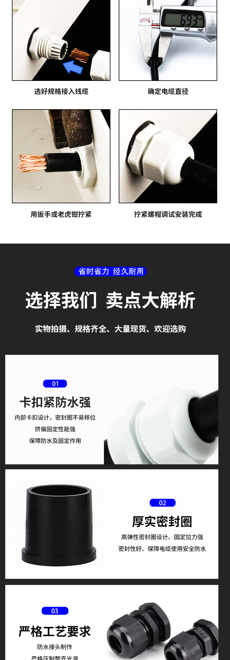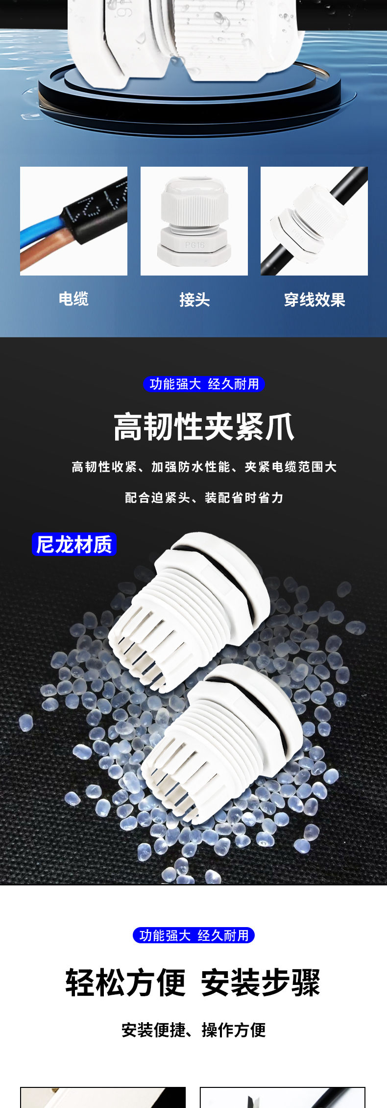 • 尼龙电缆防水接头电线连接器保护套密封塑料葛格兰头公制PG型 M型