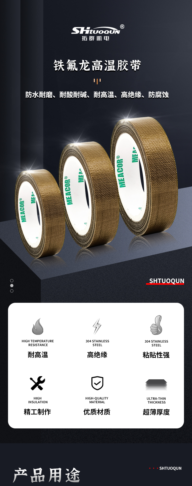拓群铁氟龙胶布耐高温300度绝缘胶隔热防磨封口机真空包装