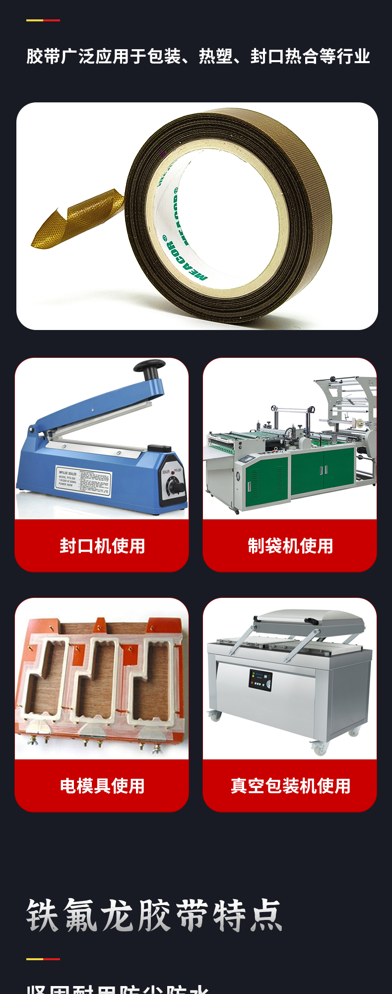 铁氟龙胶布耐高温300度绝缘胶隔热防磨封口机真空包装