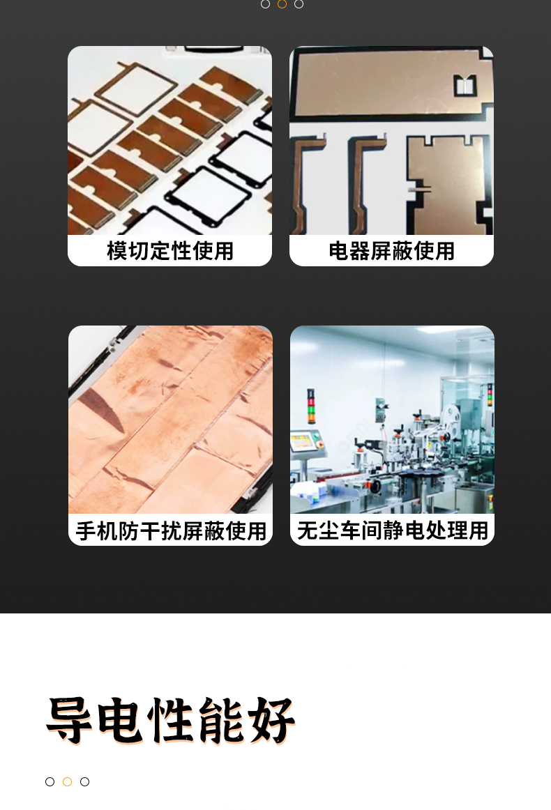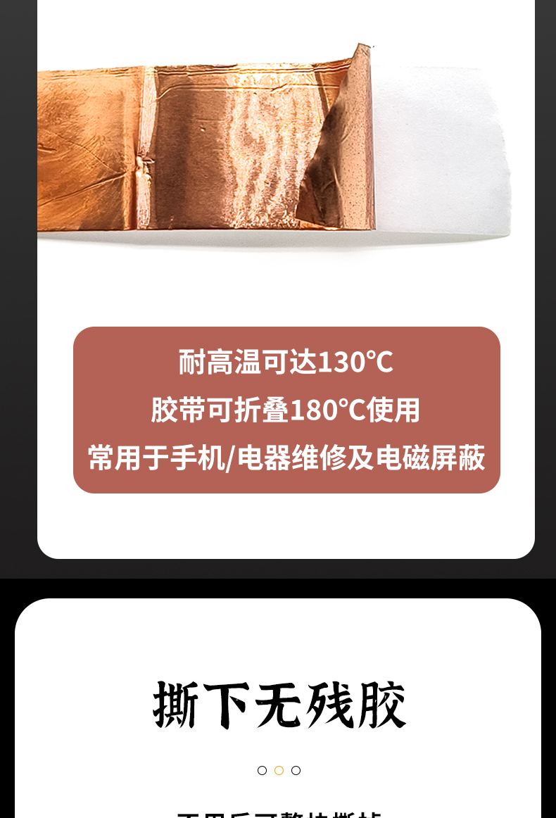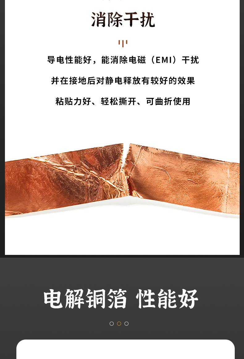 • 铜箔胶带双面导电屏蔽带信号增强纯铜加厚铜箔纸防干扰高温导电胶