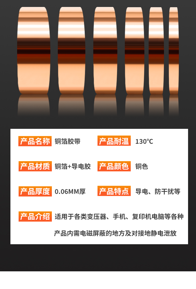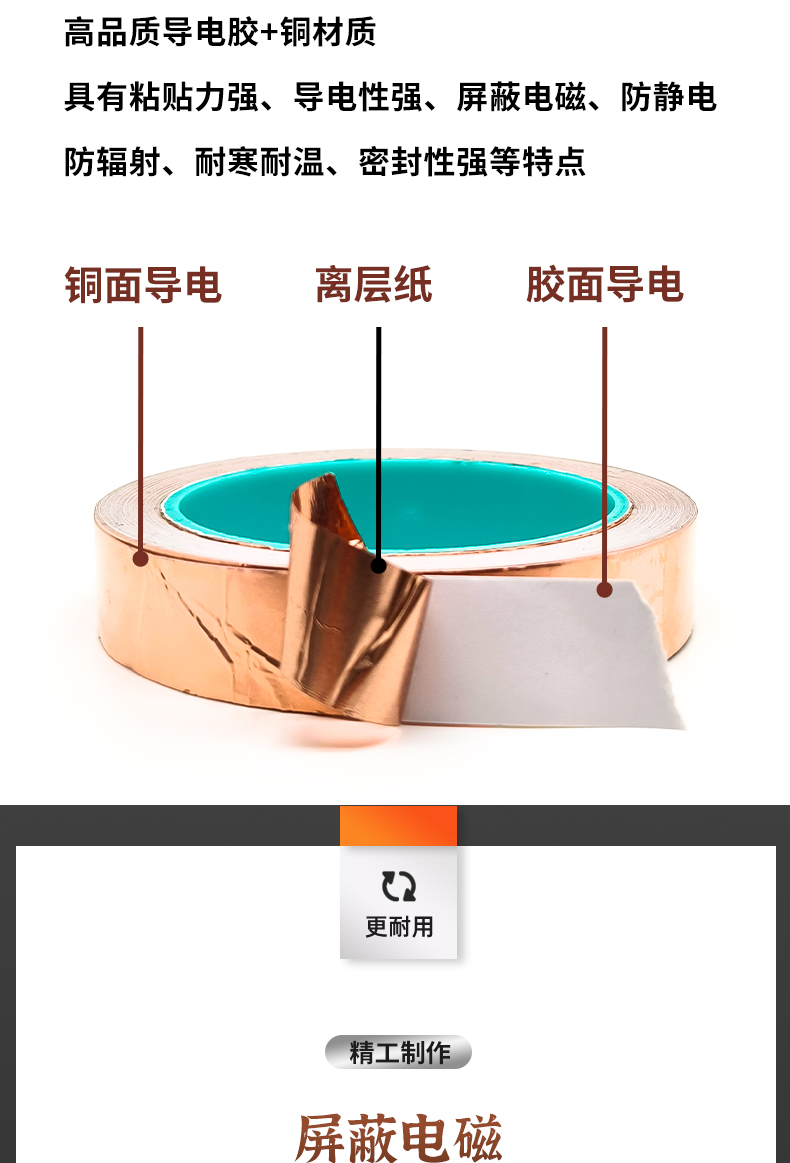 铜箔胶带双面导电屏蔽带信号增强纯铜加厚铜箔纸防干扰高温导电胶