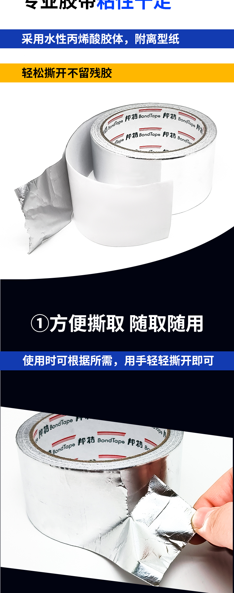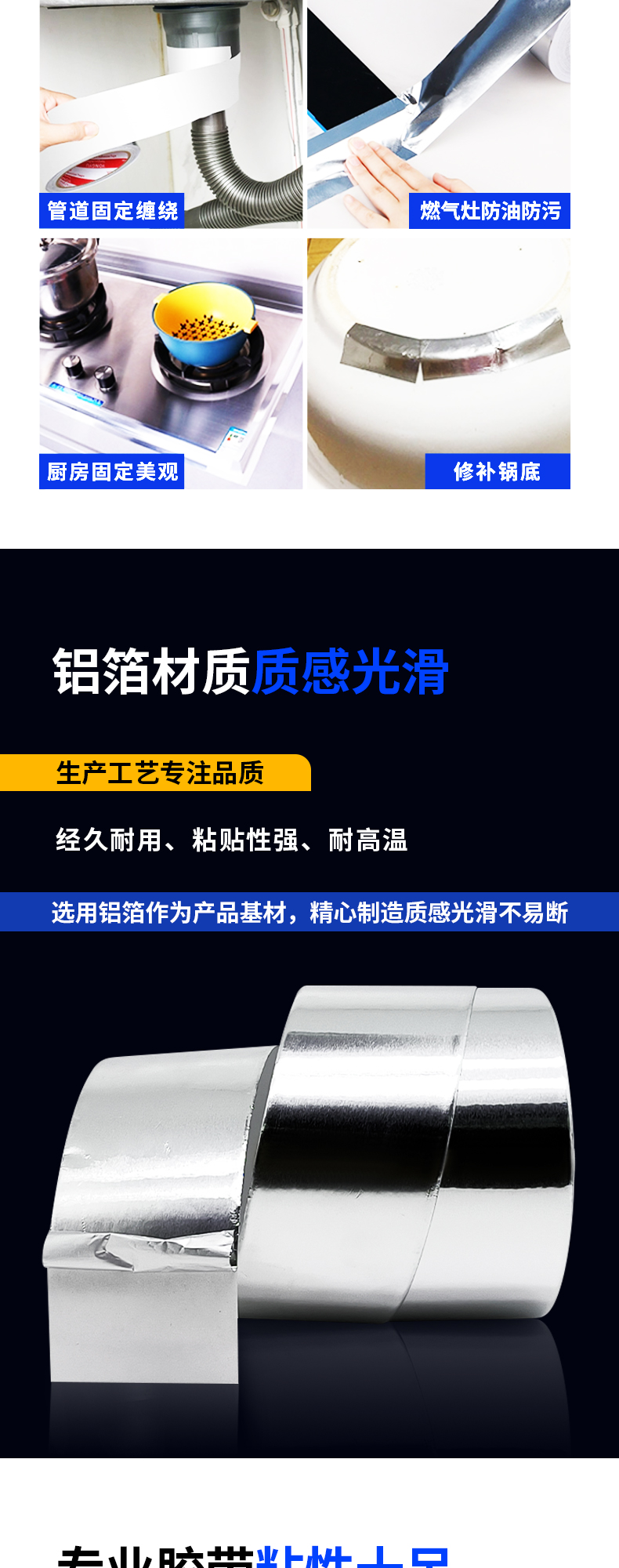 • 自粘铝箔胶带 耐高温密封防水火补漏防辐射隔热 铝箔锡纸胶带加厚