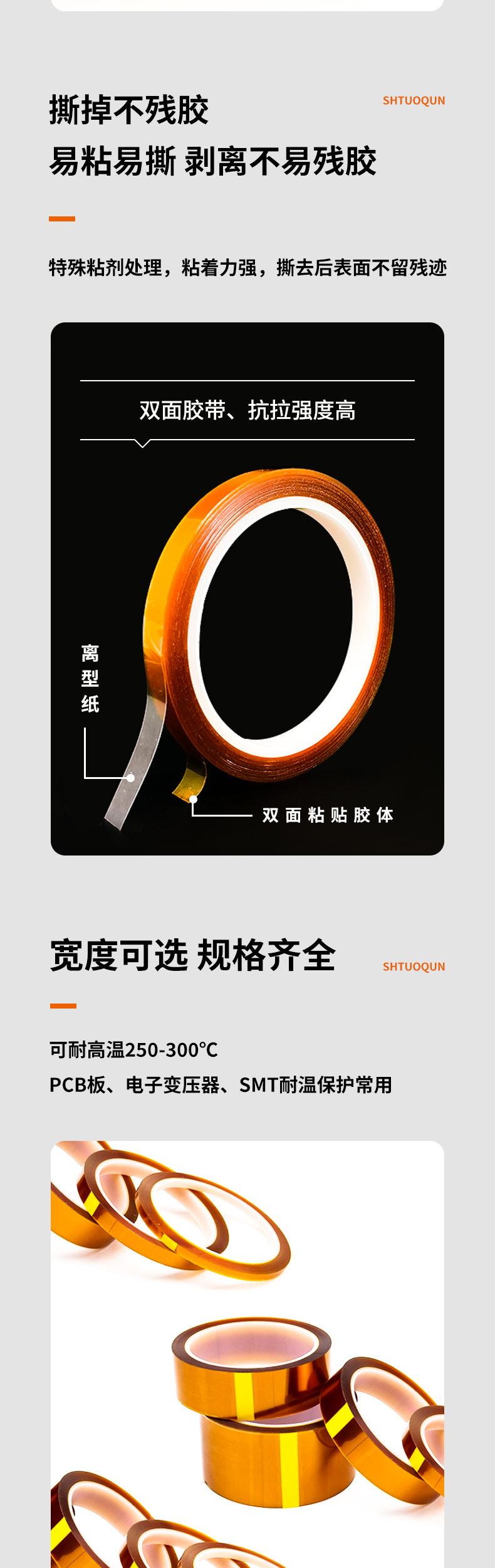• 电子元器遮蔽保护pi绝缘双面胶纸 金手指高温胶带 聚酰亚胺隔热胶