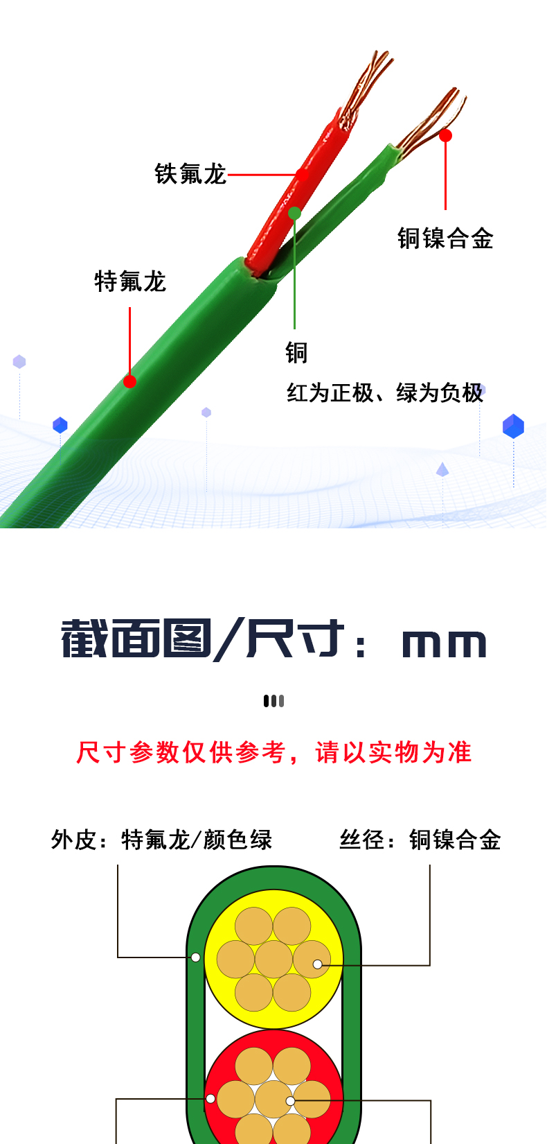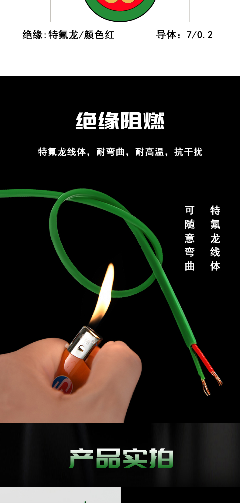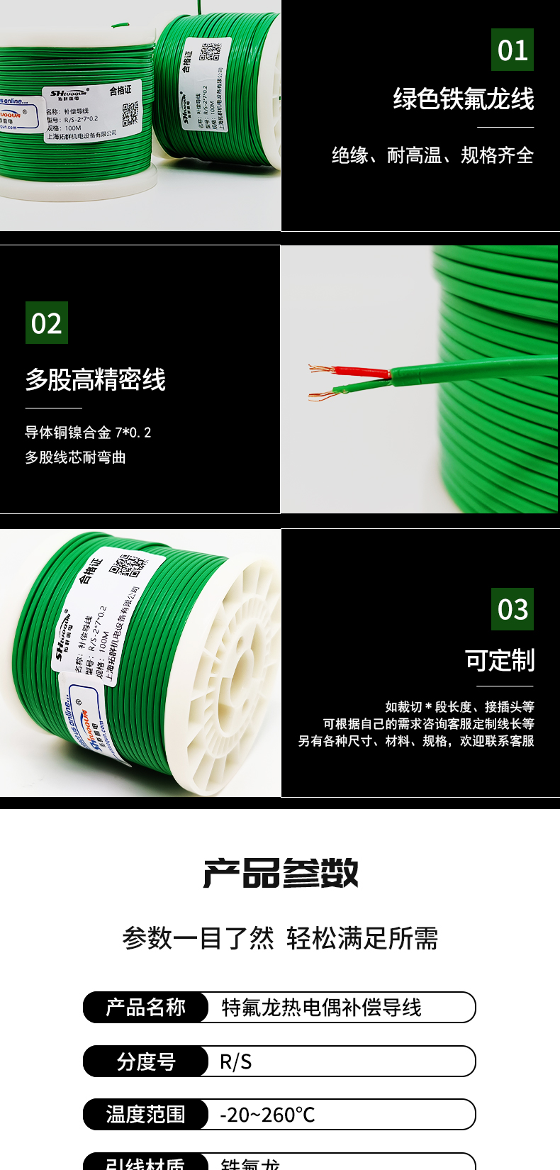 • R/S铁氟龙测温线2*7*0.2补偿导线绿色多股热电偶感温线耐高温