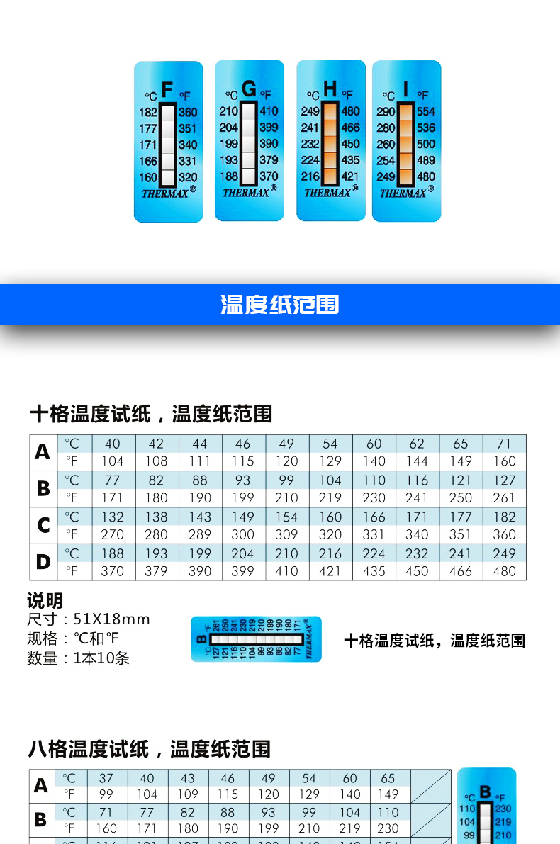 • 英国THERMAX测温纸TMC 热敏试纸 炉温纸 温度试纸 一格测温纸实验室测温