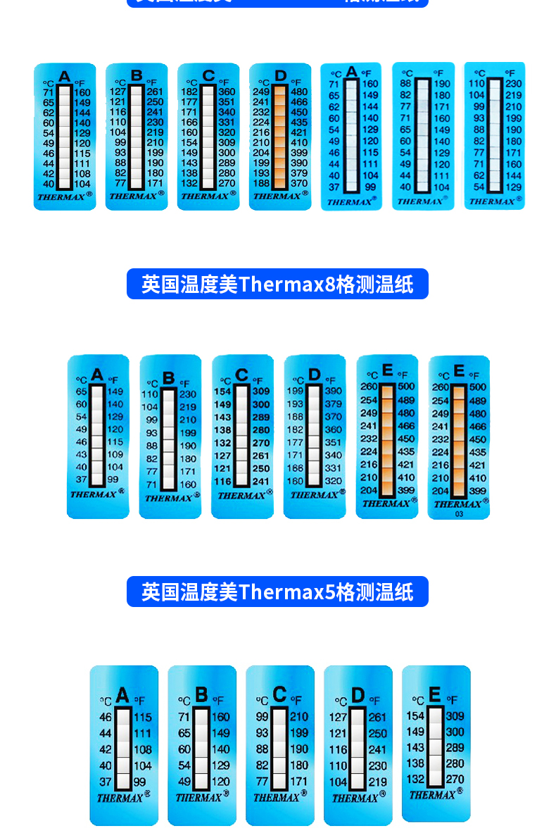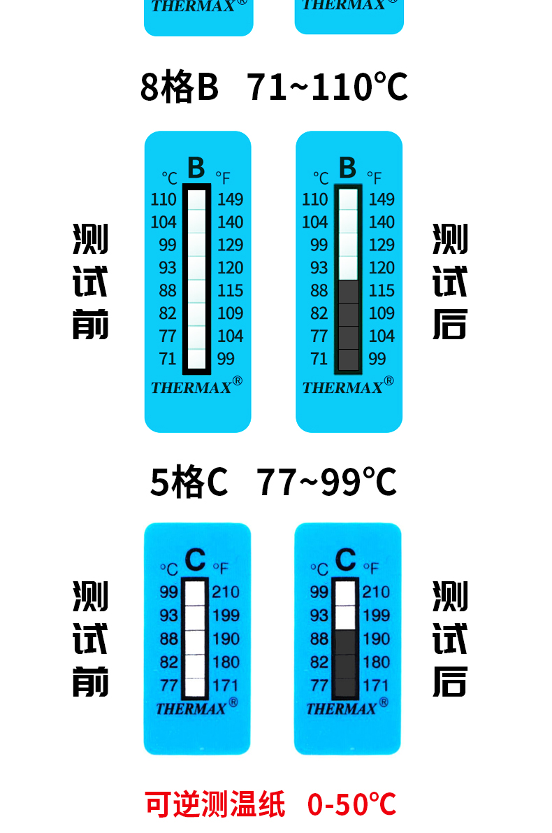 • 英国TMC可逆测温纸 50到100度反复使用 多次显示热敏试纸贴 可逆测温条